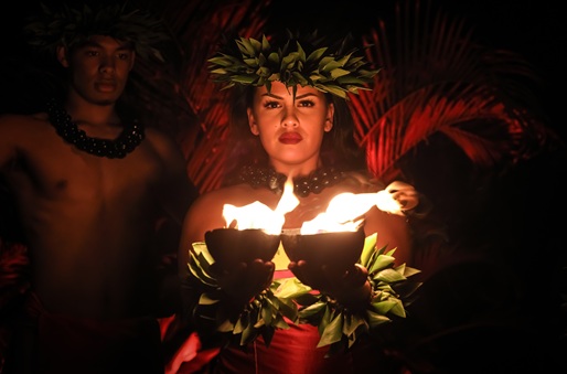 An energetic journey across Polynesia featuring hula, war dances, live music, audience participation, and fire dancing.